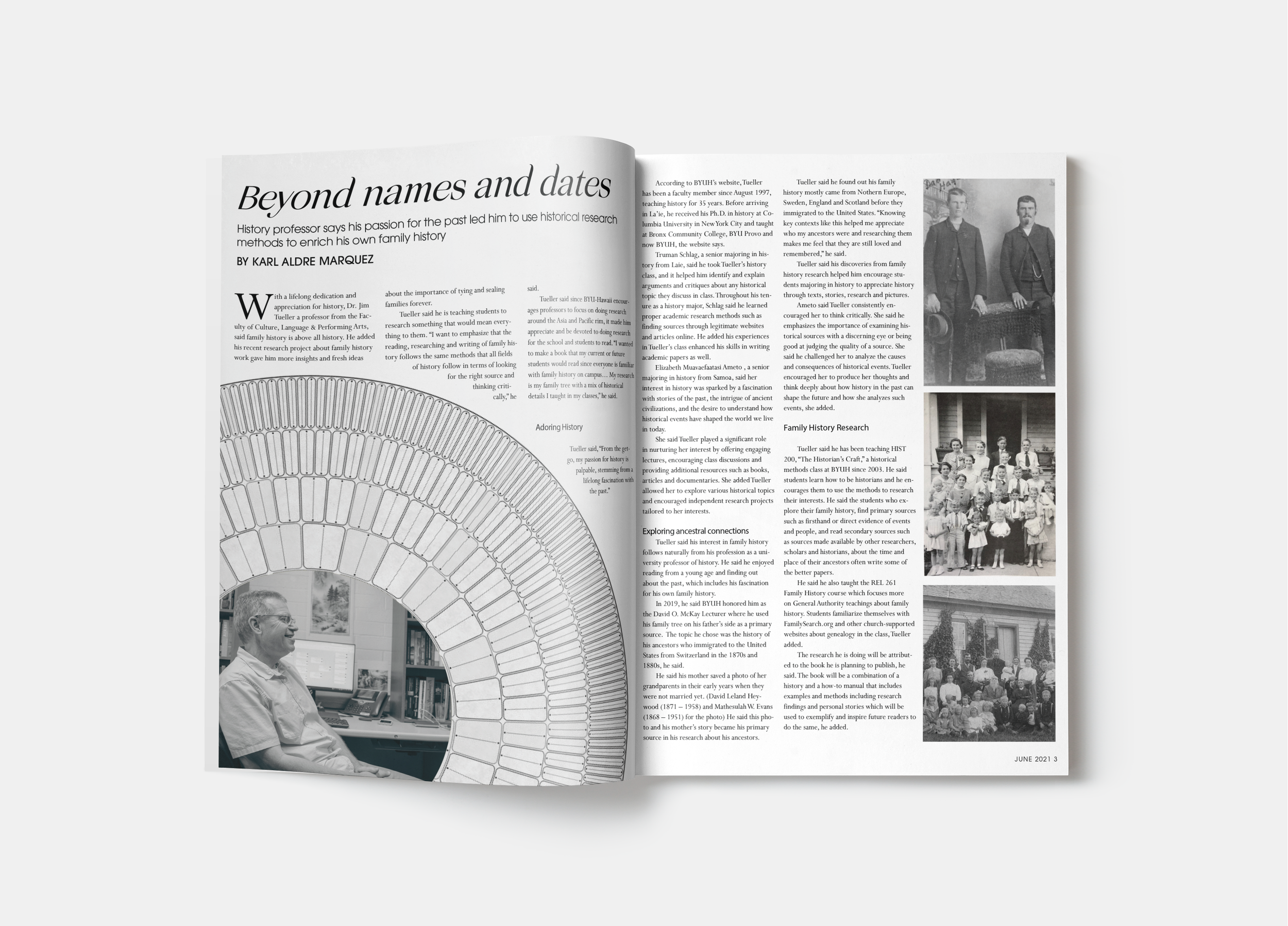 The Culture issue was all about celebrating the diverse student body at Brigham Young University Hawaii. The moodboard was colorful, with a strong use of geometric shapes.